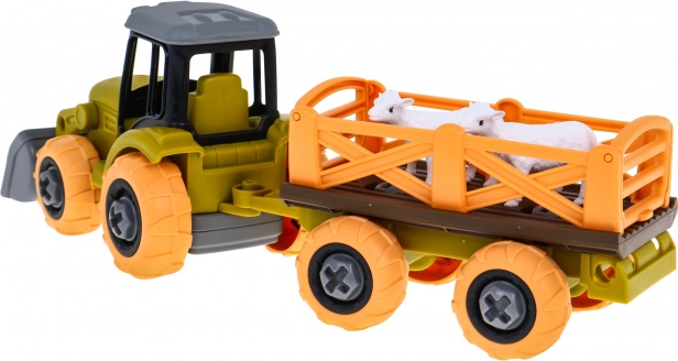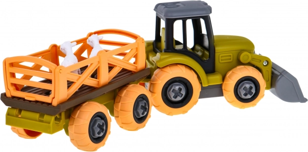 Tento solidně zpracovaný traktor s odnímatelným přívěsem je ideální pro děti od třech let. Je dodáván v již složeném stavu a jeho hlavní výhodou je, že jej lze pomocí přiloženého šroubováku rozložit a znovu složit. Nepotřebuje žádné baterie, a tak je bezpečný a snadno použitelný. Detaily hračky zahrnují: