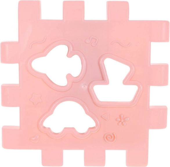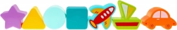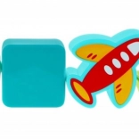Různé výřezy a odpovídající dílky (hvězda, čtverec, trojúhelník, kolečko, autíčko, letadlo, loďka) učí rozpoznávání tvarů a rozvíjejí jemnou motoriku.