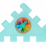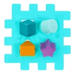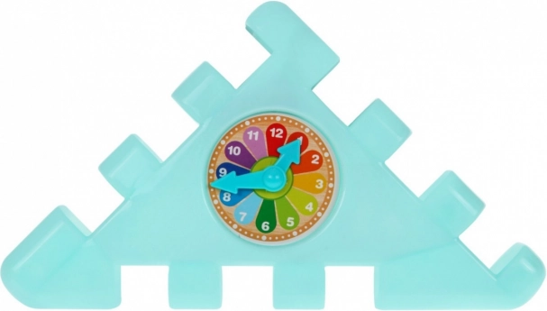 Součástí jsou také třídiče tvarů a barev, zrcátko pro vizuální vnímání a hodinový ciferník pro první seznámení s časem. Děti si procvičí uchopování, mačkání, otáčení, posouvání i provlékání, což podporuje kognitivní dovednosti a logické myšlení.