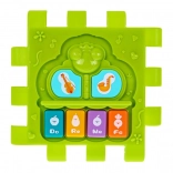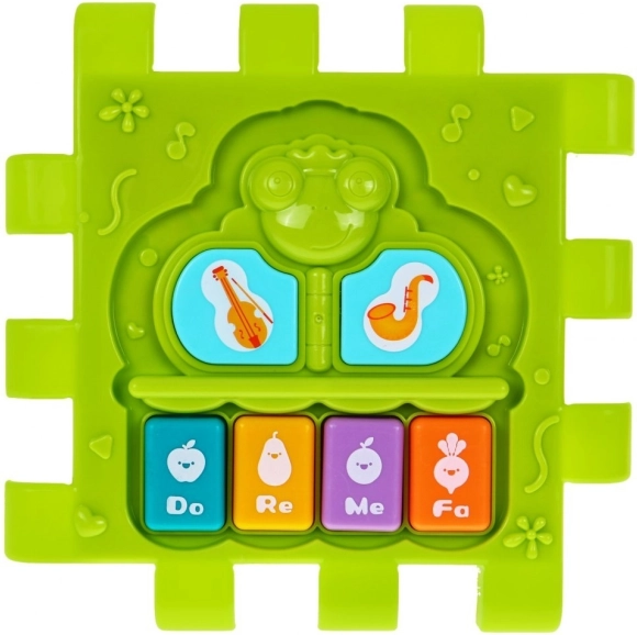 Jasně zelený panel s tlačítky „Do–Re–Mi–Fa“ rozvíjí sluch, rytmus a zrak díky světelným efektům. Skvělé pro první hudební objevování.