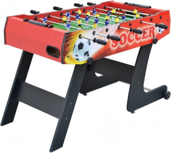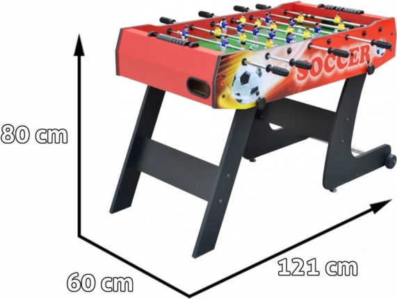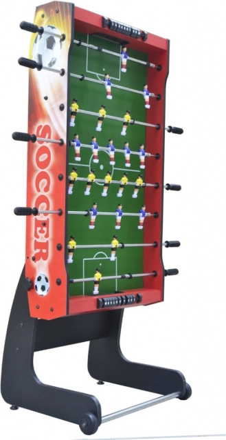 Užijte si zábavu pro celou rodinu se skladacím stolním fotbálkem v červené barvě. Robustní konstrukce z MDF, teleskopické bezpečné tyče, protiskluzové rukojeti a úsporné vertikální skladování s transportními kolečky dělají z tohoto stolu skvělou volbu do bytu i herny. Součástí jsou 2 míčky a manuální počítadla gólů.