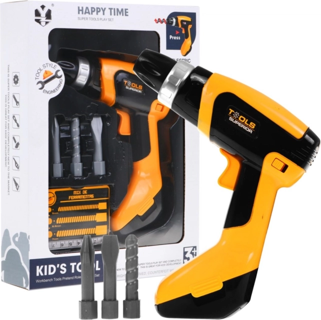 Tato elektrická vrtačka pro děti vypadá a funguje jako skutečná. Děti mohou používat vrtačku k utahování a povolování šroubů nebo k vrtání. Výměnné koncovky činí hru zábavnější.