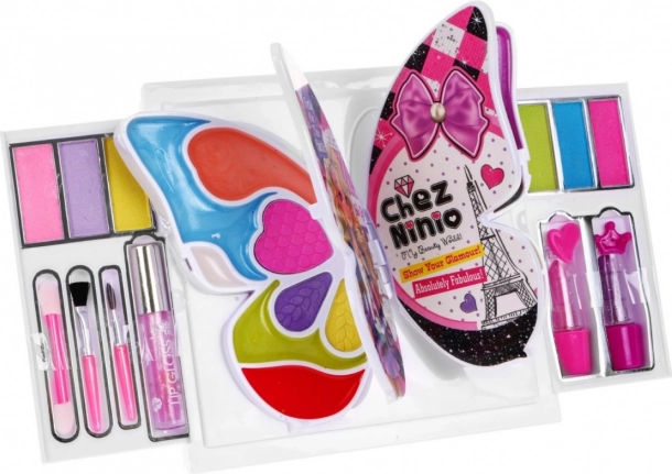 Kouzelná sada na líčení v tvaru motýla potěší všechny malé parádnice. Rozkládací pouzdro ukrývá pestrou paletku očních stínů, lesky na rty, rtěnky, štětečky a rovnou dvě zrcátka – vše přehledně uložené a vždy po ruce. Po skončení líčení se set snadno složí do kompaktního tvaru, který si děti mohou vzít kamkoli s sebou.
