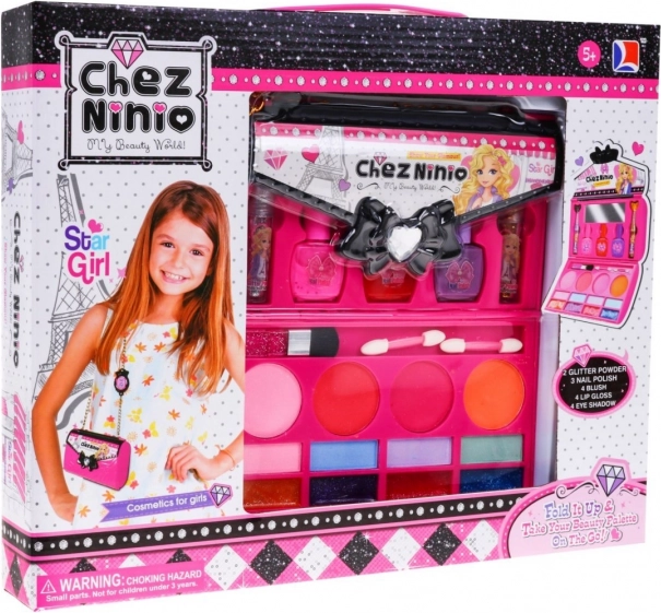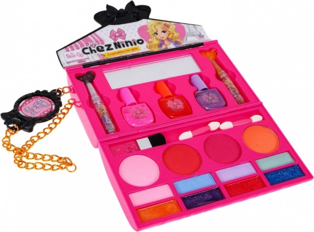 Roztomilá dětská sada na líčení v podobě růžové kabelky potěší malé parádnice od 5 let. Nabízí 2v1 – kabelku a mini toaletku s laky na nehty, očními stíny, tvářenkami a lesky, zrcátko i řetízek přes rameno. Vyrobeno z bezpečných materiálů a ideální na cestování a kreativní hru.