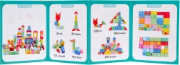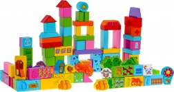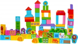 Tato bohatá sada dřevěných kostek přináší dětem hodiny smysluplné zábavy. Kostky jsou vyrobené z kvalitního dřeva, lakované bezpečnými barvami a mají hladké, nezaoblené hrany bez otřepů pro pohodlné a bezpečné hraní. Různé tvary a barvy vybízejí k budování domečků, věží, mostů i jednoduchých vozítek.