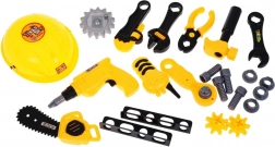 - 23dílná sada s realistickým příslušenstvím – helma, vrtačka, kladivo, pilka, klíče, kombinačky a další.