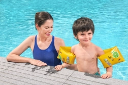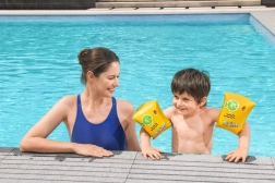 Rukávky BESTWAY Swim Safe ABC jsou skvělou pomůckou pro děti ve věku 3–6 let při prvních krůčcích ve vodě. Dvukomorová konstrukce zajišťuje lepší stabilitu a bezpečnější nadnášení, zatímco měkký a odolný PVC materiál neomezuje v pohybu.