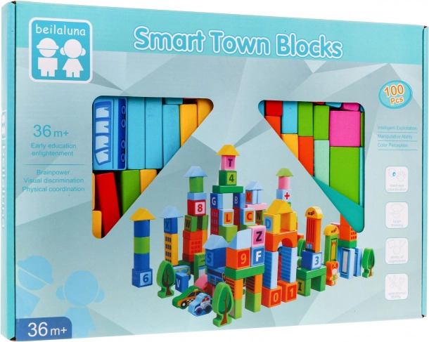 Dřevěné stavební kostky Město 100 dílů pro děti 3+