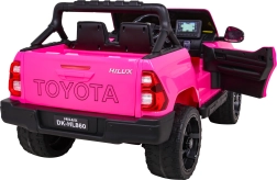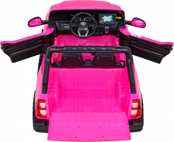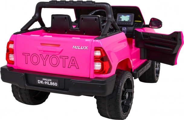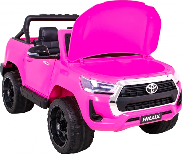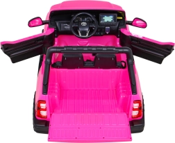 Robustní dětské autíčko TOYOTA Hilux 4x4 v růžové barvě nabízí realistickou jízdu s výkonem 4 x 45 W, silnou baterií 12 V / 14 Ah a volitelným pohonem 4x4/4x2. Rodiče ocení dálkové ovládání 2.4G s tlačítkem STOP, děti zase LED světla, audio panel s Bluetooth/USB/MP3/FM, měkká EVA kola a pohodlné sedadlo z ekokůže s pásy.