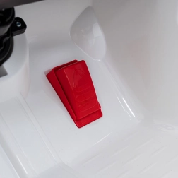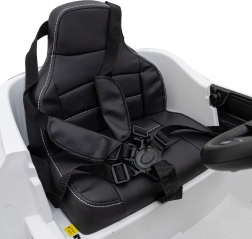Rodičovská kontrola díky ovladači 2,4 GHz se třemi rychlostmi a nouzovým tlačítkem Stop. Dítě je chráněno 5bodovými pásy s měkkými chrániči na pohodlném sedadle z ekokůže.