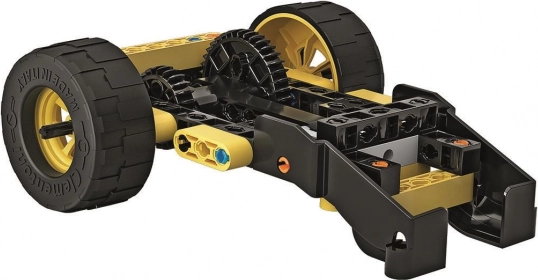 Díky promyšleným pohonným prvkům – ozubeným kolům, šnekové převodovce a diferenciálu – si vyzkoušíte, jak fungují skutečné mechanické systémy. Funkční lopata se ovládá převodem se šnekem, zatímco otočné řízení zajišťuje přesnou změnu směru.