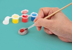 - Kompletní výbava: kameny, barvy, štětec, kelímek a samolepicí oči