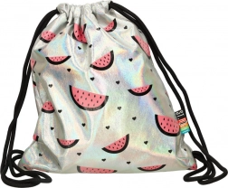 Lehký a stylový vak na záda s holografickým efektem a hravým potiskem melounů. Nabízí hlavní komoru na stahování, praktickou přední kapsu na zip a pevné šňůrky–ramínka pro pohodlné nošení. Ideální do školy, na tělocvik, volný čas i městské pochůzky.