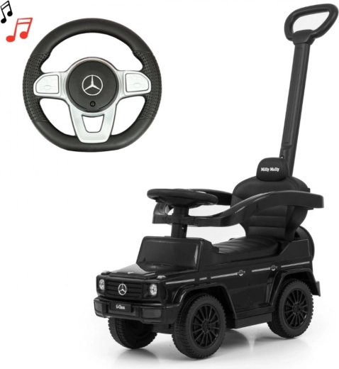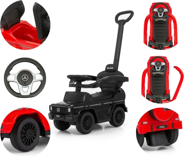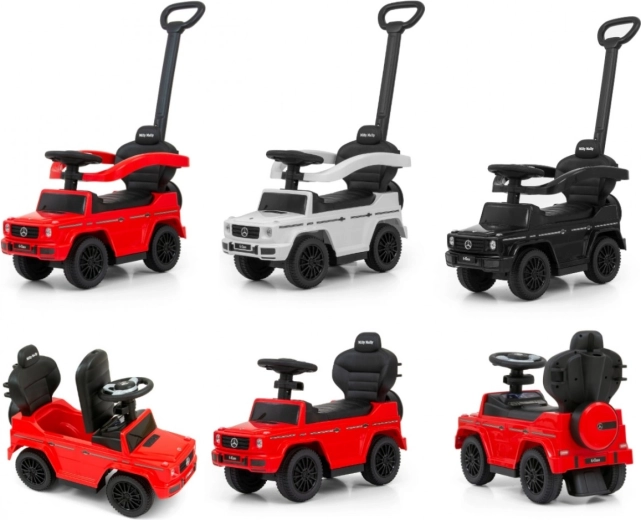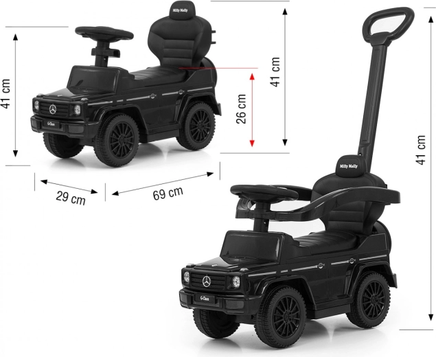 Licencované odrážedlo MERCEDES G‑Class od značky Milly Mally potěší detailním provedením a funkční výbavou. Děti zaujme autentický design mini SUV, rodiče ocení stabilitu, bezpečnost a snadné ovládání pomocí pevné vodicí tyče. Odrážedlo podporuje rozvoj rovnováhy a motoriky a je vhodné pro děti, které již umí sedět i pro malé chodce.