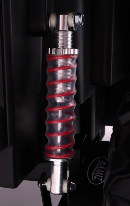 Velká EVA kola 35 × 15 cm nehučí a skvěle tlumí nerovnosti. Čtyři tlumiče se závitovým, nastavitelným zavěšením zajišťují pohodlnou jízdu.