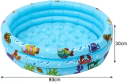 Díky průměru 80 cm a výšce 30 cm je bazének kompaktní, snadno se nafukuje, vypouští a skladuje. Odolný PVC materiál a pevná konstrukce se třemi prstenci zajišťují stabilitu a spolehlivost i při každodenním používání.