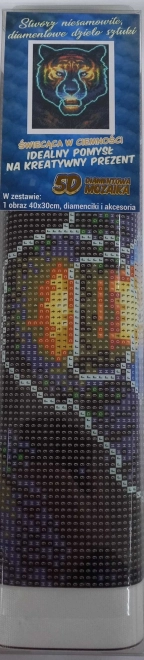 Objevte relaxační zábavu pro malé i velké: sada pro diamantové malování s motivem tygra ve formátu 30 × 40 cm. Část kamínků po nasvícení ve tmě svítí, takže hotový obraz působí magicky. V balení je vše potřebné – předtištěné plátno, aplikátor, vosk, mistička i barevné kamínky. Tvoření je snadné, zábavné a bez nutnosti uměleckých dovedností.