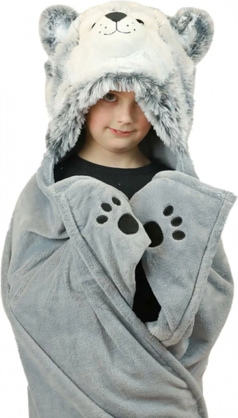 Hřejivá deka Cozy Noxxiez Husky promění obyčejné zachumlání v zábavu. Díky plush fleecu je neuvěřitelně měkká, příjemná k pokožce a skvěle hřeje. Kapuce s roztomilým husky obličejem a dvě rohové kapsy s motivem tlapek poutají pozornost a podporují dětskou kreativitu při hraní.