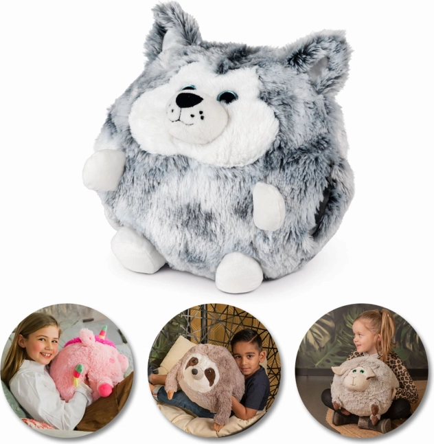 Roztomilý polštář COZY NOXXIEZ ve tvaru husky je 3 v 1: měkoučký plyšák, rukávník na ohřátí rukou a cestovní polštář v jednom. Díky dvěma bočním otvorům rychle zahřeje ruce, poslouží jako tajná skrýš a zútulní každý dětský pokoj. Lehký, hebký a ideální na cesty autem, vlakem i letadlem.
