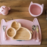 Talířek je vyroben ze 100% bambusu s netoxickým lakem a vyznačuje se hladkým povrchem, který se snadno čistí. Praktický tvar zvířátka děti motivuje k jídlu a zpříjemňuje každé stolování.