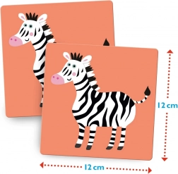 Objevujte svět safari s pexesem, které malé hráče nadchne svými výraznými a srozumitelnými ilustracemi. Díky velkým, pevným kartám se s hrou snadno manipuluje a děti se rychle naučí hledat dvojice.
