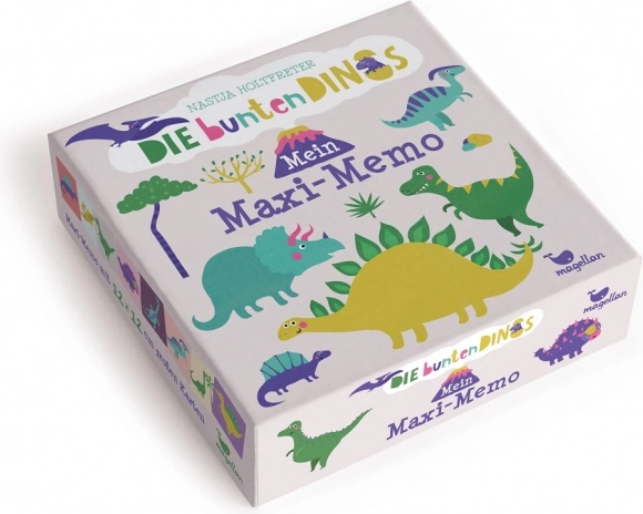 Velké pexeso s dinosaury od značky Magellan potěší malé paleontology od 3 let. Hra na principu hledání dvojic trénuje paměť a postřeh, rozvíjí logické myšlení a díky velkým, pevným kartám 12 × 12 cm se dětem skvěle drží. Ilustrace od Nastji Holtfreter přinášejí přátelské T‑Rexy, stegosaura i pterodaktyla.