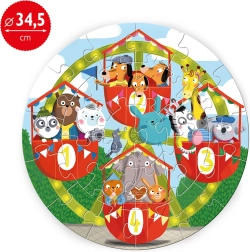 Tato krásná kulatá skládačka s motivem zvířátek na ruském kole přináší dětem zábavné učení formou hry. Díky přehlednému počtu dílků a přívětivému designu je puzzle vhodné pro první skládací úspěchy a společné chvíle s rodiči.
