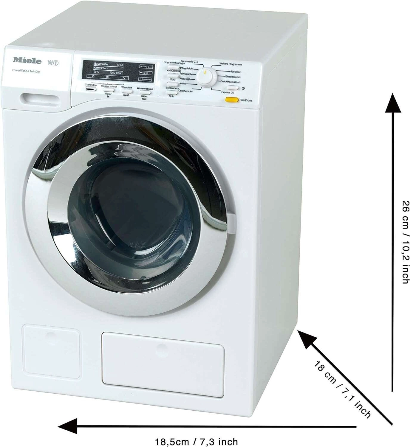 Realistická dětská pračka MIELE od značky KLEIN přináší dětem autentickou zábavu při napodobování dospělých. Nabízí otáčející se buben, 4 prací cykly, LED indikaci a možnost praní s vodou i bez vody. Díky zvukovým efektům a funkční šuplíkové zásuvce na vodu je hra ještě věrohodnější a bezpečná pro děti od 3 let.