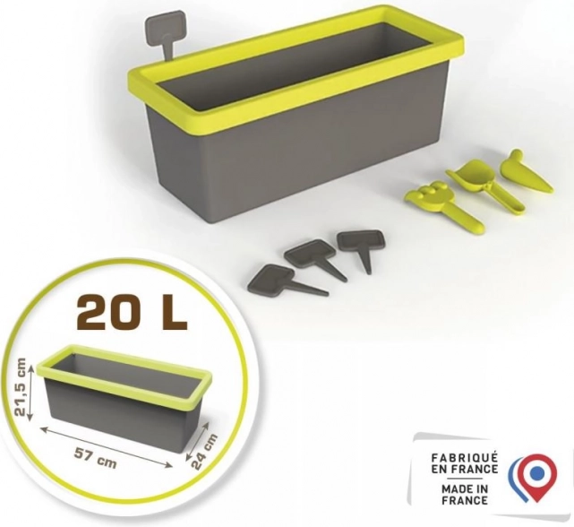 Dětský zahradní truhlík SMOBY je ideální pro první pěstitelské pokusy – od bylinek po květiny. Díky objemu 20 litrů, odolnému plastu s ANTI-UV ochranou a chytré retenční zóně pro odtok vody se děti zábavnou formou učí péči o rostliny. Součástí je dětské nářadí a jmenovky na sazenice. Skvěle se hodí na balkon, terasu i ke všem dětským domečkům SMOBY.