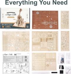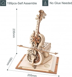 ROBOTIME kouzelné violoncello – 3D dřevěné mechanické puzzle a hudební skříňka