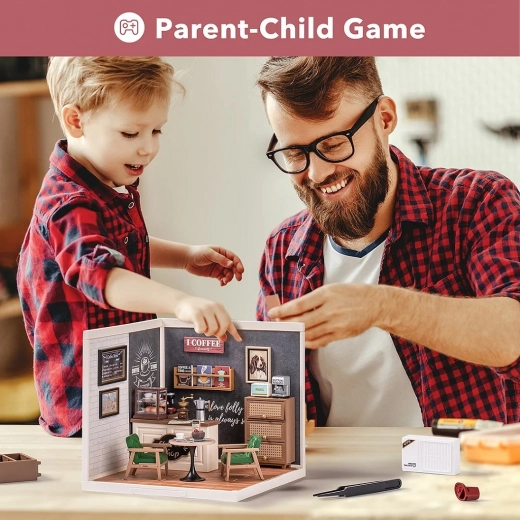 Postavte si vlastní kout útulné kavárny v mini měřítku. Tato kreativní DIY sada od Robotime přináší detailní miniatury, LED osvětlení a vše, co potřebujete k sestavení okouzlujícího dekoru. Ideální jako dárek, pro relax i jako stylová dekorace do interiéru.