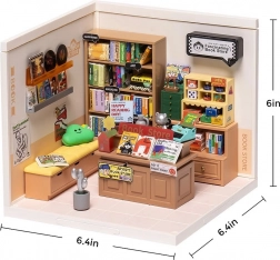 Objevte kouzlo malého světa s miniaturou knihkupectví od Robotime. Tato detailní výtvarná stavebnice nabízí autentickou atmosféru knihkupectví s policemi plnými knížek, pultem a dekoracemi. Užijte si příjemné tvoření, LED osvětlení pro útulný efekt a snadné sestavení přibližně za 1 hodinu. Ideální jako dekorace, dárek pro knihomoly i sběratelský diorámový model.