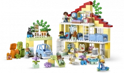 Objevte rodinný dům LEGO DUPLO 3 v 1, který děti provede každodenním životem, hrou i učením. Třípatrový dům s pěti pokoji, 7 figurkami a množstvím doplňků podporuje rozvoj sociálních dovedností, fantazii i jemnou motoriku. Nechybí svítící kostka ve tvaru hvězdy, zahrádka se sklizní a elektrické autíčko na solární pohon – ideální pro děti od 3 let.