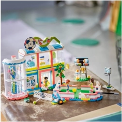 LEGO Friends centrum sportu přináší dětem nekonečné možnosti her. Modulární hřiště snadno proměníte z fotbalu na tenis či basketbal, nechybí tabule skóre, bezpečné úložiště míčů ani detailně vybavené zázemí – posilovna, lezecká stěna a šatna. S aplikací LEGO Builder je stavění intuitivní díky přibližování, otáčení modelu a sledování postupu.