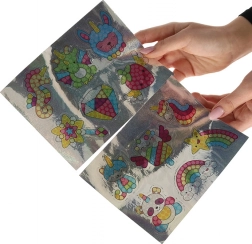 Balíčky s dekoračními kamínky v 7 výrazných barvách dodají samolepkám úžasný třpyt a hloubku 5D efektu.