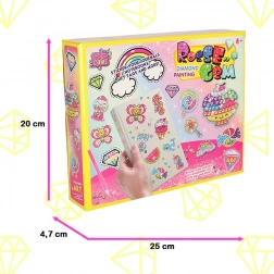 Tato kreativní aktivita podporuje jemnou motoriku, trpělivost a soustředění, zároveň přináší klid a radost z tvoření. Díky kompletnímu příslušenství v balení můžete začít okamžitě a krok za krokem vytvářet lesklé motivy.