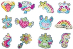 Diamantové malování promění každou samolepku v třpytivé mini dílo! Sada obsahuje 12 šablon, 7 barev kamínků, aplikátor, vosk a tácek – vše, co potřebujete pro snadné a relaxační tvoření dětí od 6 let i dospělých.