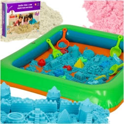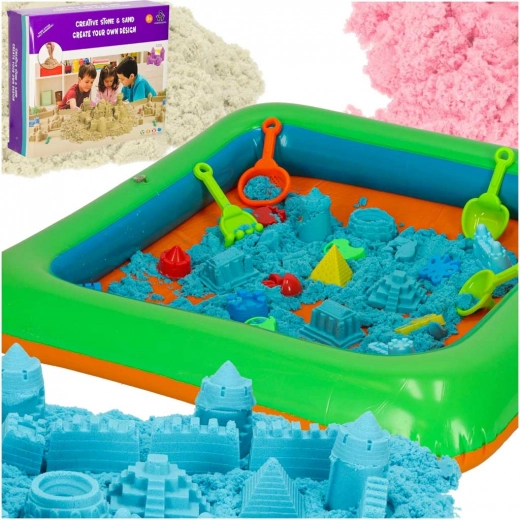 Sada obsahuje nafukovací pískoviště, kam můžete umístit celý kilogram kinetického písku. Toto pískoviště se stane kreativní stanicí, kde budou vaše děti vytvářet úžasné výtvory plné fantazie.