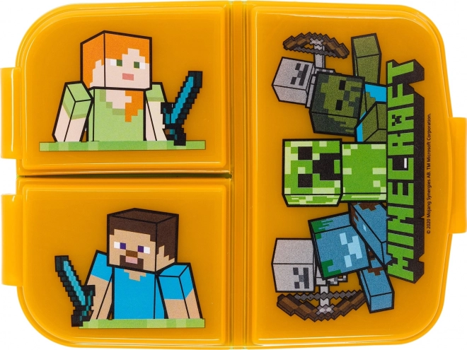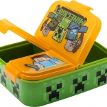 Udělejte dětem radost stylovým svačinovým boxem s motivy z oblíbené hry MINECRAFT. Díky třem samostatným přihrádkám snadno oddělíte pečivo, ovoce i drobné svačinky, takže vše zůstane čerstvé a úhledně uložené. Kompaktní rozměry se pohodlně vejdou do školní tašky či batůžku.