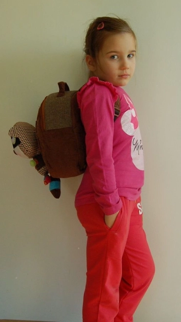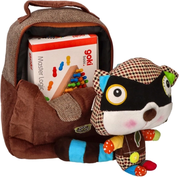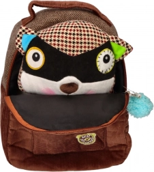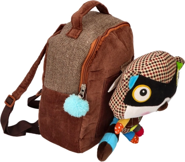 Batoh má na sobě hravou hračku ve tvaru mývala, která dělá z nošení batohu zábavu.