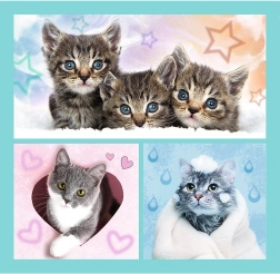 Tato sada puzzle 3 v 1 nabízí tři samostatné obrázky s půvabnými koťátky. Díky rozdílnému počtu dílků si děti mohou vybrat obtížnost podle věku a nálady, a rozvíjet tak trpělivost, logiku a jemnou motoriku.