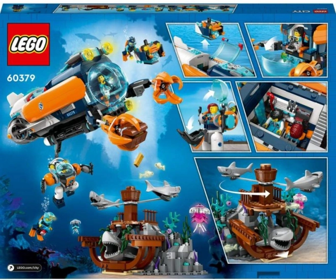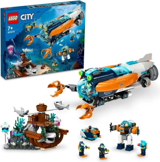 LEGO® City Hlubinná průzkumná ponorka (60379) je přímo nabitá funkcemi a realistickými prvky. Ponorka je vybavena parádním kopulovitým kokpitem, laboratoří, podvodním dronem a potápěčským oblekem v robotickém stylu pro průzkum mořského dna. Vrak lodi skrývá žraločí doupě, domov obří medúzy a potopený poklad. Díky 6 minifigurkám vás čekají hodiny nápaditého hraní.