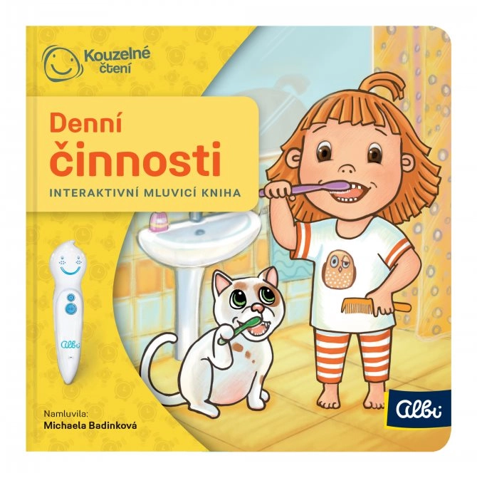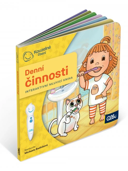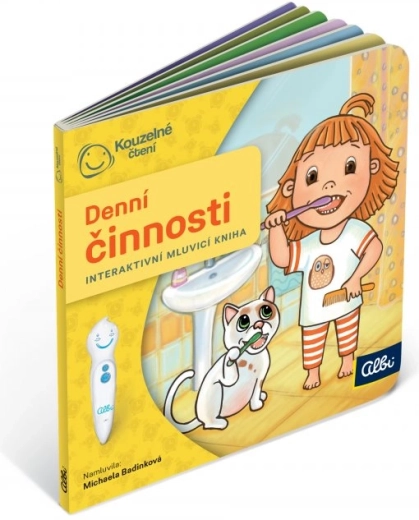 Minikniha Denní činnosti z edice ALBI Kouzelné čtení rozvíjí dětskou představivost, slovní zásobu i samostatnost. Děti s hrdiny prožijí celý den – od vstávání přes hygienu až po hraní – a vše doprovází zvuky, hudba a komentáře namluvené Michaelou Badinkovou.