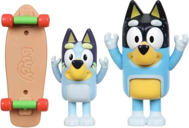 Zestaw figurek Bluey na skateboardu je ideálním dárkem pro všechny malé fanoušky animovaného světa Bluey. Obsahuje dvě pasivní pohyblivé figurky, Bluey a jejího tatínka Bandita, které mohou děti umístit na skateboard a inscenovat různé scény.