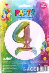 Oživte svou oslavu duhovým balónkem ve tvaru čísla 4. Velký formát je vidět i z dálky a barevný přechod vytváří atraktivní efekt, který skvěle zapadne do moderní dekorace na narozeniny nebo jubileum.