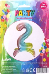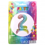 Oslavte narozeniny nebo výročí stylově s tímto nafukovacím fóliovým balónkem ve tvaru čísla 2 v trendovém duhovém provedení. Ideální pro fotokoutky, výzdobu sálů i domácí párty, nabízí výrazné barvy a velikost až 80 cm v nenafouknutém stavu.