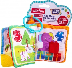 Praktická kousací šusticí knížka pro miminka od 3 měsíců, která rozvíjí smysly a jemnou motoriku. Nabízí měkké textury, šustící stránky, kousátko, otáčivé korálky a kroužek na zavěšení – ideální na doma i na cesty.