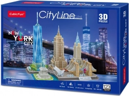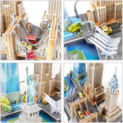 3D puzzle CityLine panorama New York přináší jedinečný mix kreativity, relaxace a designu. Díky přesně vyřezaným dílkům z cca 3 mm silné pěny potažené kvalitním potištěným laminem je skládání příjemné a intuitivní – bez lepidla a bez nůžek. Hotový model působí jako realistická miniatura města, ideální pro vystavení.