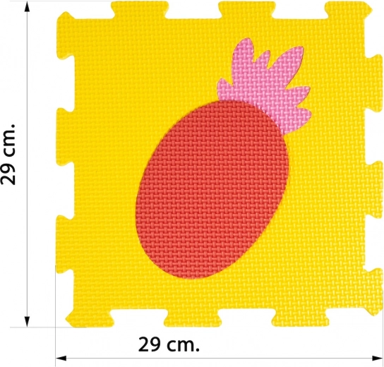 Pěnová hrací podložka s motivy ovoce kombinuje komfort a vzdělávací zábavu. Měkký a na dotek příjemný materiál tlumí nárazy a izoluje chlad od podlahy, takže je ideální pro hraní, cvičení i krátký odpočinek. Díly do sebe snadno zapadají a umožní skládat jak ploché koberce, tak prostorové konstrukce.