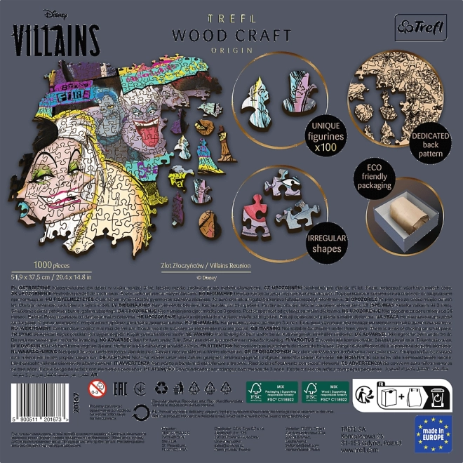 Objevte prémiové dřevěné oboustranné puzzle TREFL z řady Wood Craft Origin s motivem Disney: Setkání záporáků. Díky laserově přesnému zpracování do sebe dílky dokonale zapadají, okraje jsou hladké a skládačka nabízí neopakovatelný zážitek pro milovníky puzzle i Disney světa. Čeká na vás 100 jedinečně tvarovaných dílků, oboustranný tisk a ekologické balení bez plastu.